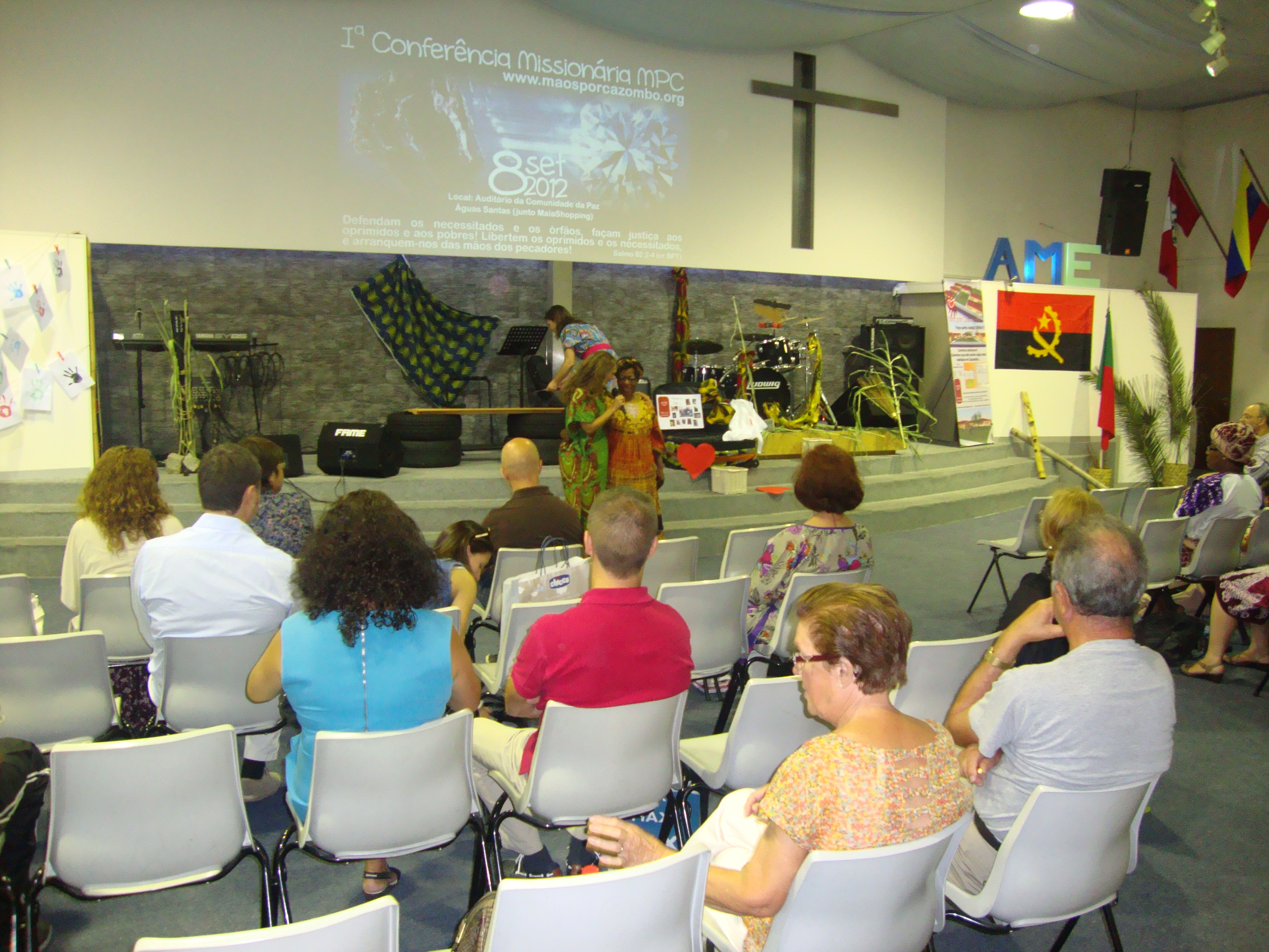 Podemos ainda conhecer um pouco mais sobre vários acontecimentos ao longo deste ano, numa apresentação com várias fotos documentadas respectivamente: e como têm crescido as nossas crianças! Vários elementos da direção tiveram a oportunidade de intervir frisando a visão desta obra que nasceu do coração de Deus “Defendei o pobre e órfão(…) Livrai-o o pobre e o necessitado; tirai-o das mãos dos ímpios.” Sl 82:3, 4, como também lembrando que percorremos o processo “de carvão a diamante”- o título desta conferência. Foi mencionado próximas metas para 2013: inicio da 1ª fase construção, onde foi lançado o desafio para a “Campanha Construa conosco, faça uma criança sorrir” ( link?); férias missionárias, e a transformação da Associação em ONG. Após um intervalo para um “bolinho e cafézinho” ( entre outras coisas deliciosas!) que generosamente foi preparado por voluntários da igr Comunidade da Paz ( anfitriãos), e a reverter parte também para a Mãos por Cazombo prosseguimos com a última parte do programa: Um tempo mais de louvor com o Coral Memorial Wesley que colocou todos os participantes “em movimento” e animados na presença de Deus e a Palavra de Deus trazida pela pastora Carmen Tomateo ( Valencia- Espanha).